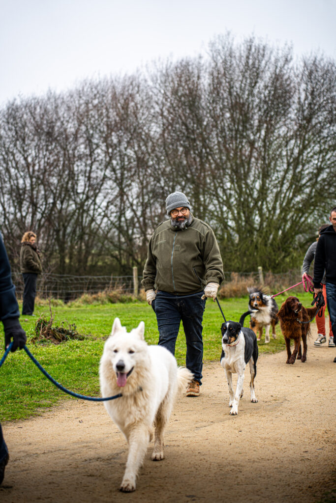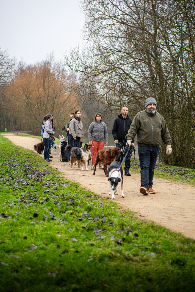 – Le guider à adopter la bonne attitude en présence d’un autre chien…